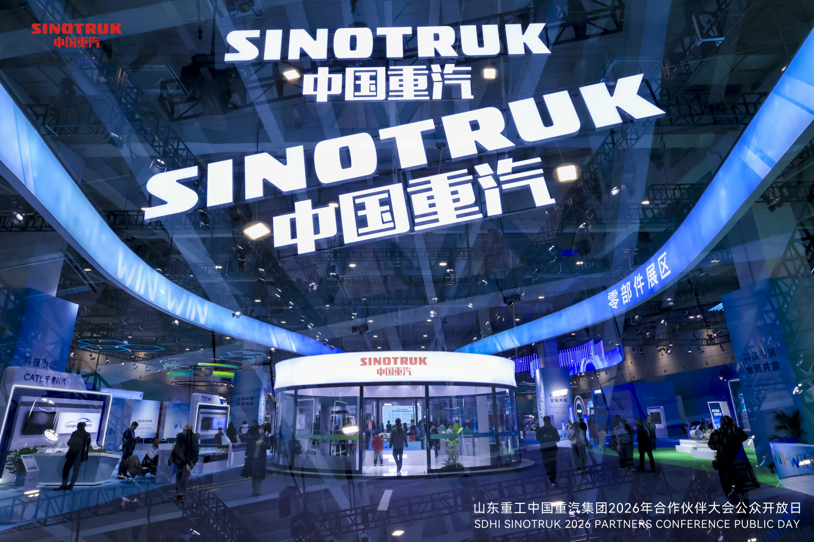 中国重汽的“国际范儿”,体现在布展设计的每一处细节之中。展厅正上方多环型的设计,层层环绕、聚焦视觉核心,寓意以科技创新为轴心,凝聚全球伙伴,共赴未来征程;整体布局以环形步道为脉络实现区域联动,不同功能模块如同齿轮咬合般紧密关联,生动诠释了中国重汽与合作伙伴“环环相扣 共生共荣”的协同关系;而色彩流动的“WIN-WIN”,则是科技与未来的具象化表达:既承载着科技的理性质感,也象征着中国重汽对绿色转型的坚守以及对全链共赢的追求,这份与时代发展同频的担当,也恰是其立足前沿技术探索与扎实工业根基的根本支撑。