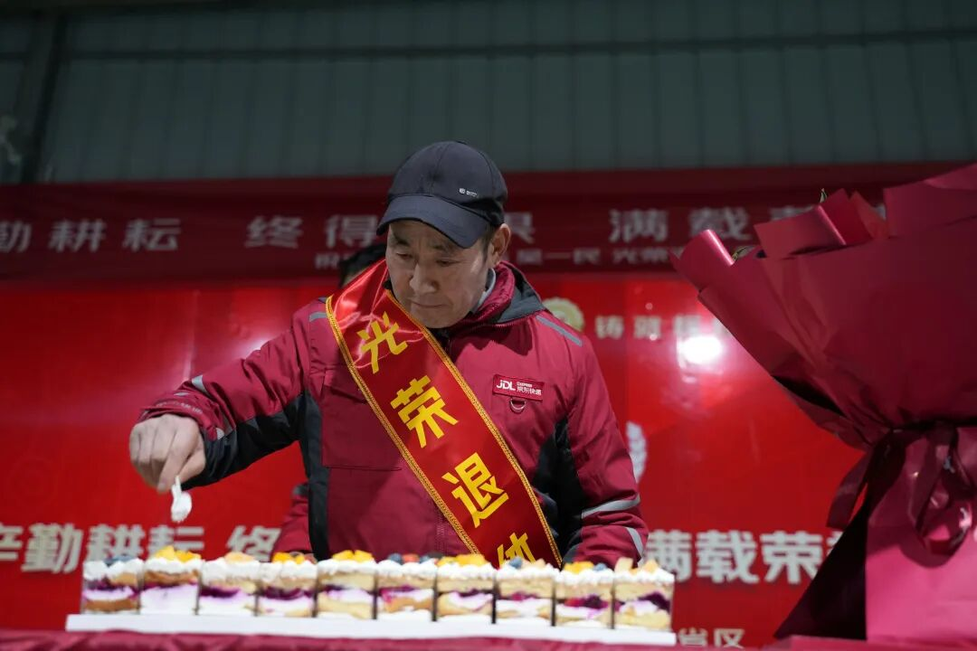 2025年1月,京东物流北京分拣员陈海彦退休