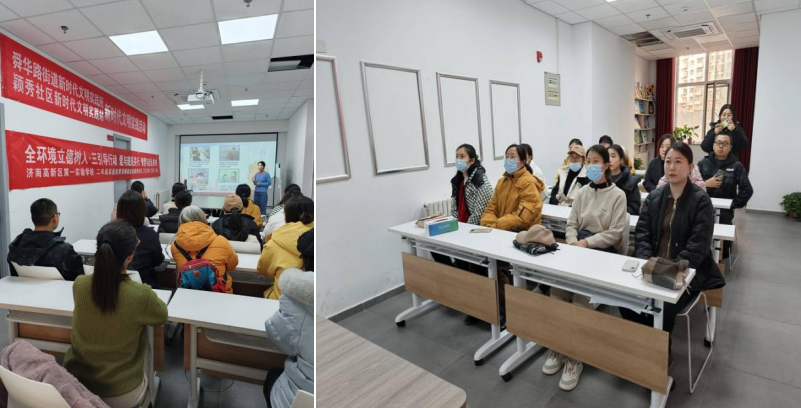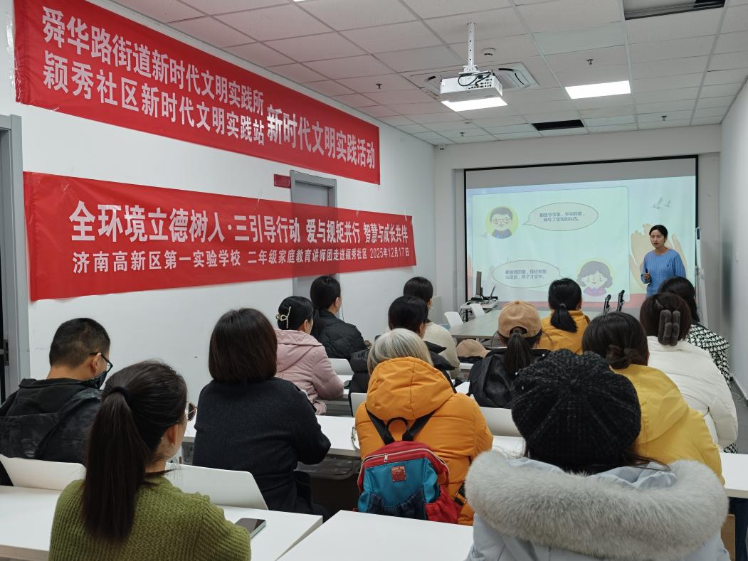 为深入推进全环境立德树人“三引导”行动,将科学的家庭教育理念与方法送到家长身边,近日,济南高新区第一实验学校联合新东方社区开展“爱与规矩并行”家庭教育指导进社区活动。学校二年级班主任团队以真实案例为引,用通俗的语言、实用的技巧,为社区0-12岁儿童家长带来了一场干货满满的育儿分享,让孝亲敬老的传统美德浸润家庭,让家校社协同育人的力量温暖社区。
