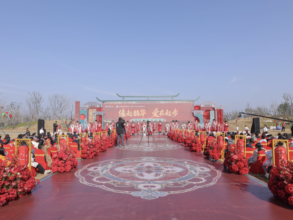 为弘扬文明婚俗,凝聚青年力量,11月9日,缘起鹊华 爱在起步青年职工集体婚礼在济南新旧动能转换起步区鹊山生态文化区动感草坪温馨举办,