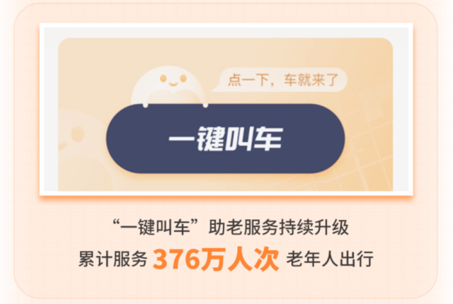 数据显示,376万人次老年人出行中,有30%的老年人选择自己叫车,70%的老年人由子女或其他家人代叫车。