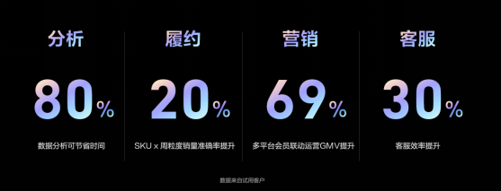 通过接入通义千问大模型,瓴羊One掌握海量通用知识,并拥有消费领域的丰富行业经验,能结合企业沉淀的专属数据资产,化身随时随地提供服务的AI客服体验专家、智能销量预测师、营销投放顾问等角色,可根据AI分析预测,智能提醒企业进行补货、客情处理、商机跟进等操作,也可回答企业对于经营建议的问询。