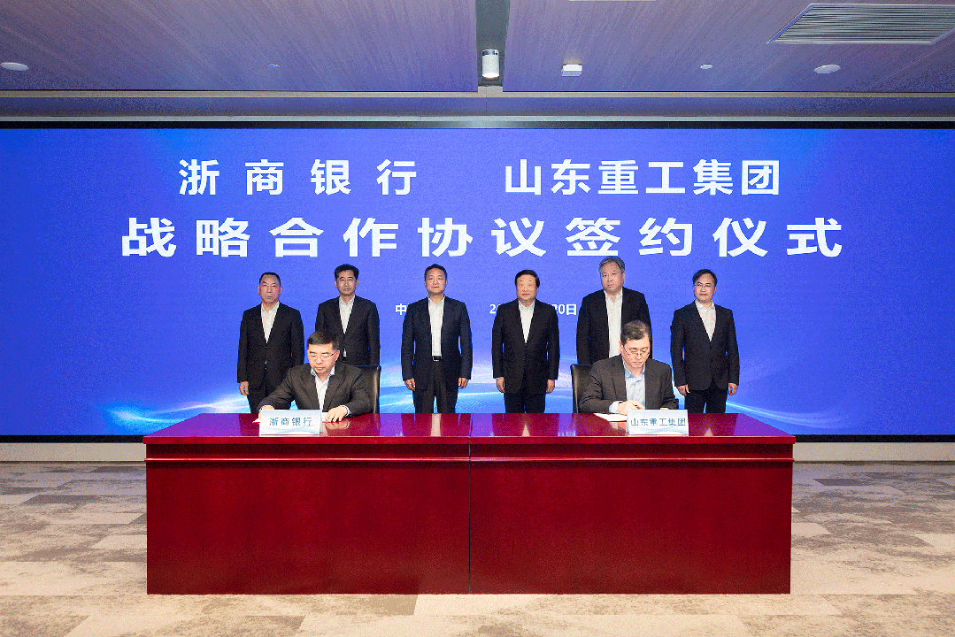 山东重工副总经理申传东、浙商银行行长助理侯波分别代表双方签署战略合作协议。