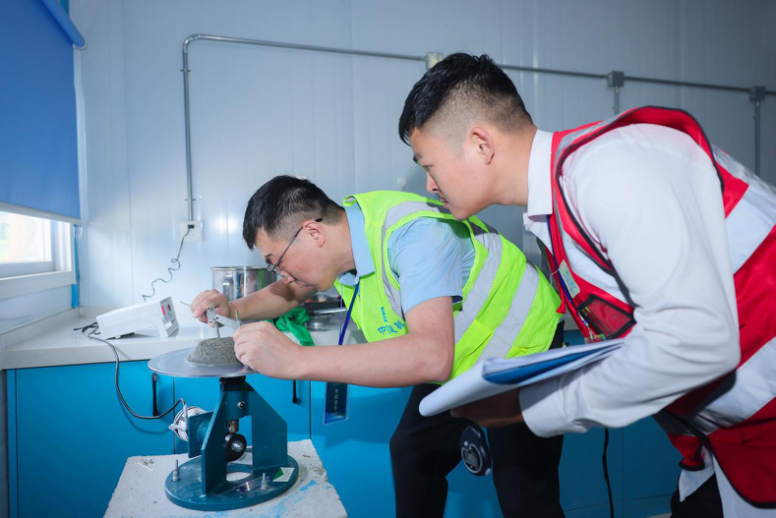 竞赛围绕建筑行业测量和试验两大领域展开,通过“理论+实操”相结合的方式,全面检验参赛选手的技能水平和综合素质。在实操环节,测量参赛选手默契配合、精准定点,紧张有序地投入到这场“毫厘之争”当中;试验参赛选手规范娴熟地使用器材,认真严谨地计算数据,准确、快速地完成了各项试验任务。