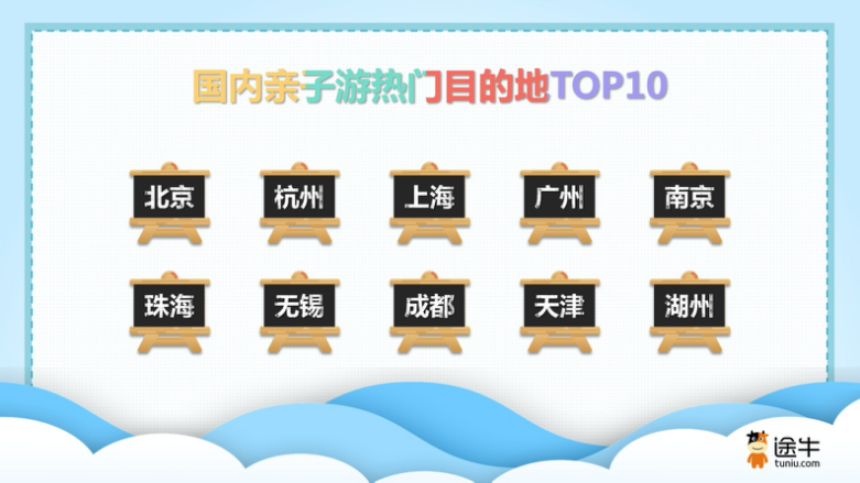 国内游热门目的中,北京、杭州、上海、广州、南京、珠海、无锡、成都、天津、湖州成为儿童节亲子游的热门选择。无论是充满梦幻色彩的主题乐园,以及让孩子们近距离接触自然的动植物园,还是拥有深厚文化底蕴的文博场馆,都吸引了不少亲子家庭的关注,相关景区景点预订火爆。自驾游和自由行因其个性化、灵活化的特点,深受亲子家庭的喜爱。