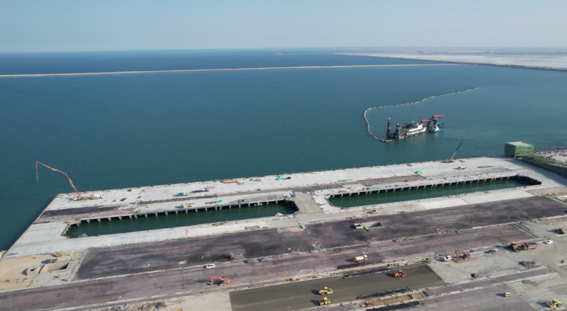 据项目建设方中铁十四局相关负责人介绍,自3月16日码头平台首幅现浇面层浇筑完成以来,项目部在两个半月时间内完成了35000余平方米的码头面层浇筑。在施工过程中,为克服港口昼夜温差及风速较大等问题,保证现浇面层施工质量严格按照工期目标任务有序推进,项目部制定施工方案,从混凝土分幅分缝、抗裂、浇筑和养护等重点环节着手,认真组织、周密部署各项工作安排,确保了面层施工的顺利完成。“下一步,我们将继续高标准、高要求推进剩余收尾工程施工,为最终项目达到交工验收条件作最后冲刺。”该负责人介绍说。