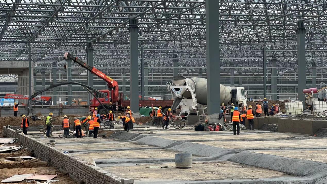 记者从现场施工人员处了解到,目前厂房主体结构已完成,厂房屋面系统已完成80%,正在进行厂房内地面施工,新投入工艺设备也正在进行预验收工作。