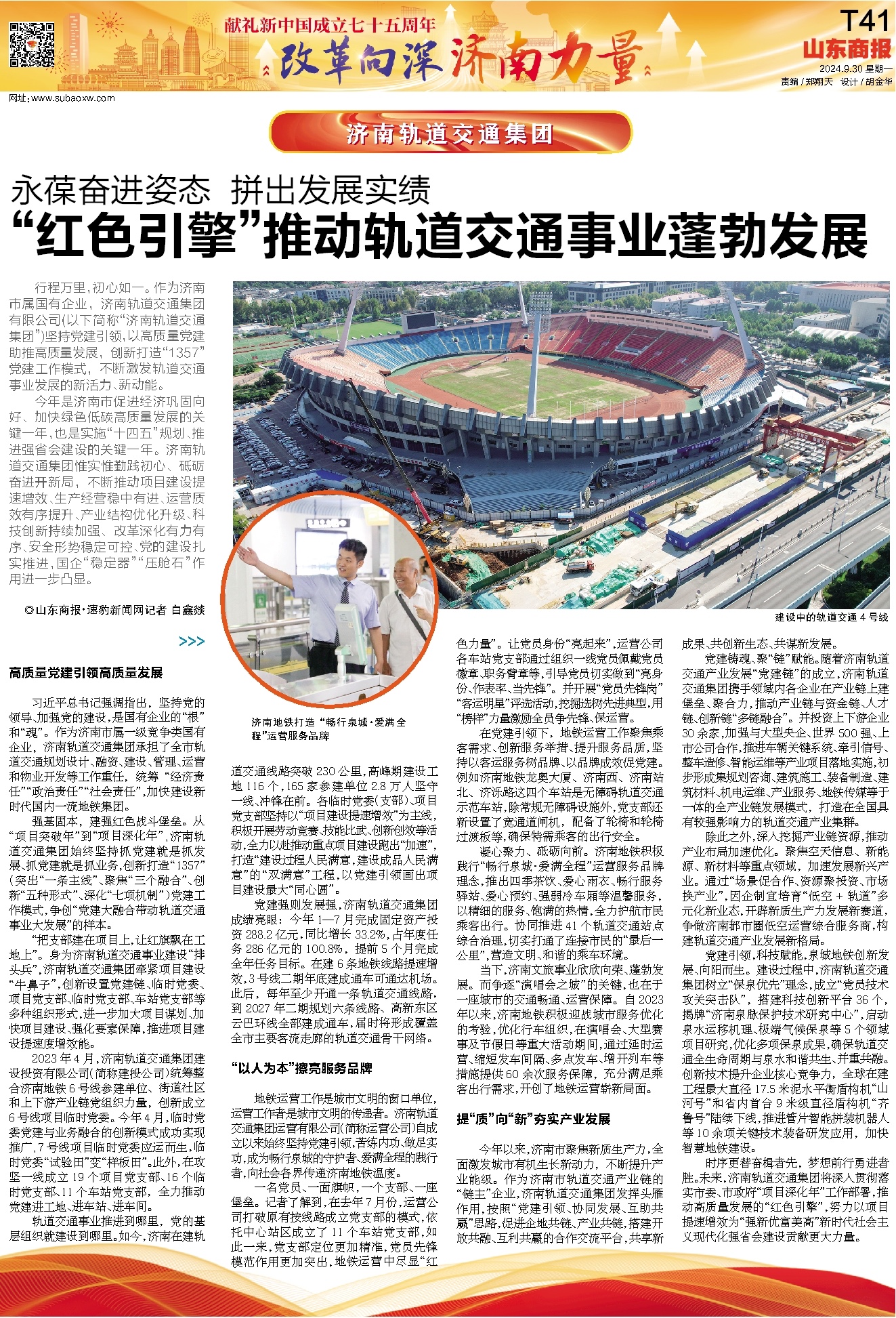 习近平总书记强调指出,坚持党的领导、加强党的建设,是国有企业的“根”和“魂”。作为济南市属一级竞争类国有企业,济南轨道交通集团承担了全市轨道交通规划设计、融资、建设、管理、运营和物业开发等工作重任,统筹“经济责任”“政治责任”“社会责任”,加快建设新时代国内一流地铁集团。