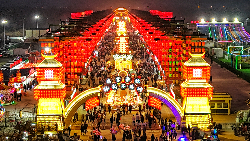 春节假期滨州惠民“乐享春秋·孙武不夜城”灯火辉煌。