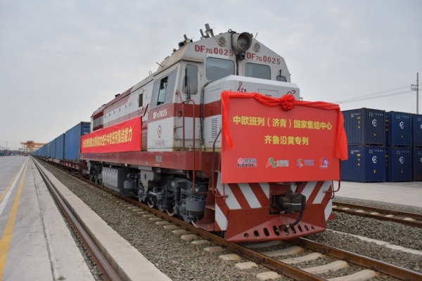 据太阳控股工作人员介绍:通过齐鲁沿黄专列,企业生产的产品可以从家门口的兖州北铁路货场“上车”,集结到济南后,与省内其他城市的货物共同搭乘山东中欧班列发往共建“一带一路”国家,既帮助了外贸企业拓展订单,又助力企业提升了运输效率。