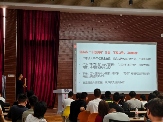 ▲培训会现场,“2025多多好特产”专项小组正讲解平台新政策。焦岩松▕摄