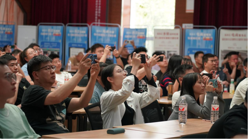 ▲“2025多多好特产”临猗培训会现场,商家们正在拍摄平台新政策。焦岩松▕摄