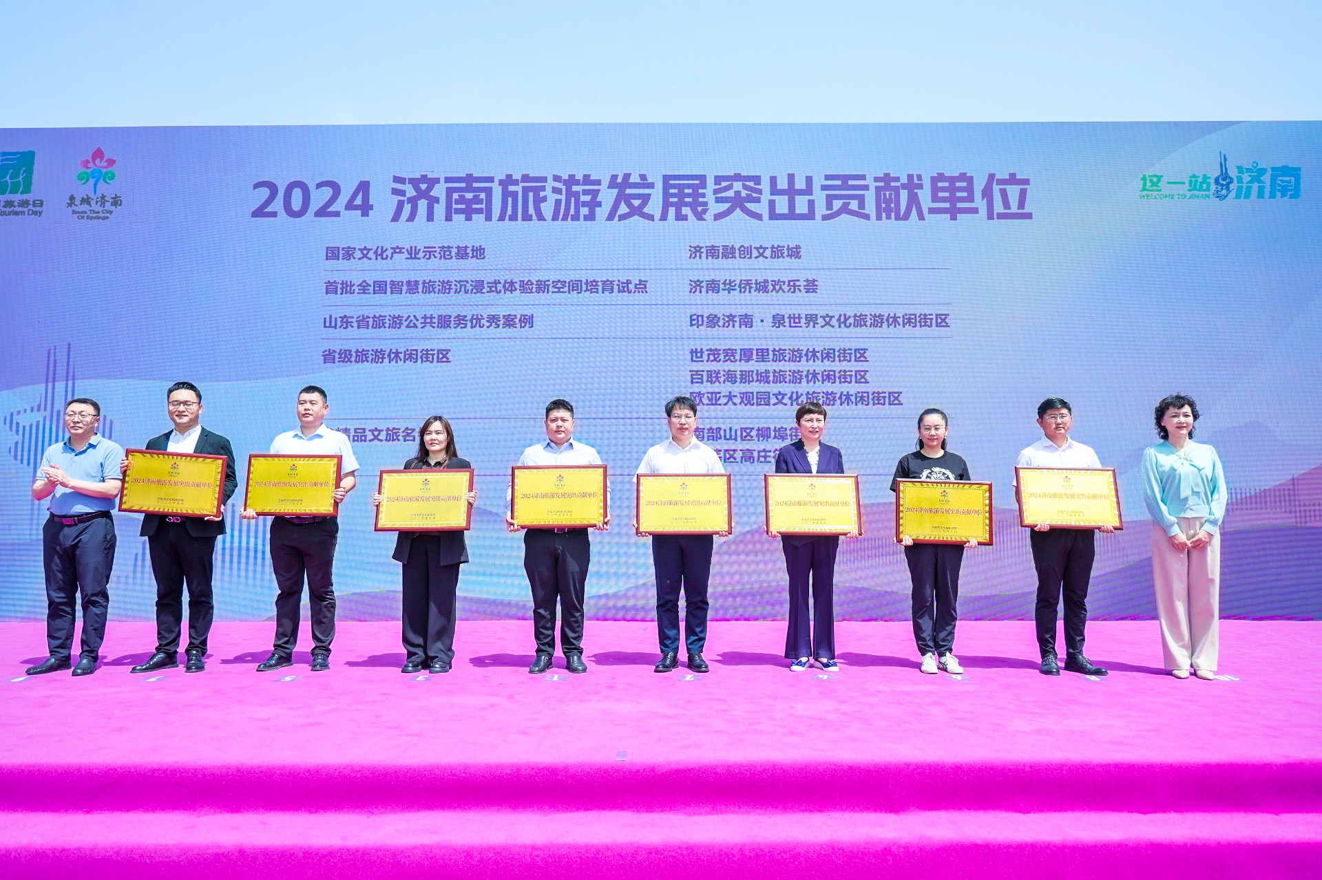 5月18日,由济南市文化和旅游局主办,济南日报报业集团承办的“‘爱上济南’城市表白季暨2025年‘5·19中国旅游日’”系列活动,在红墙黄瓦、底蕴深厚的济南府学文庙隆重举行。济南欧亚大观园荣获“2024济南旅游发展突出贡献单位”。