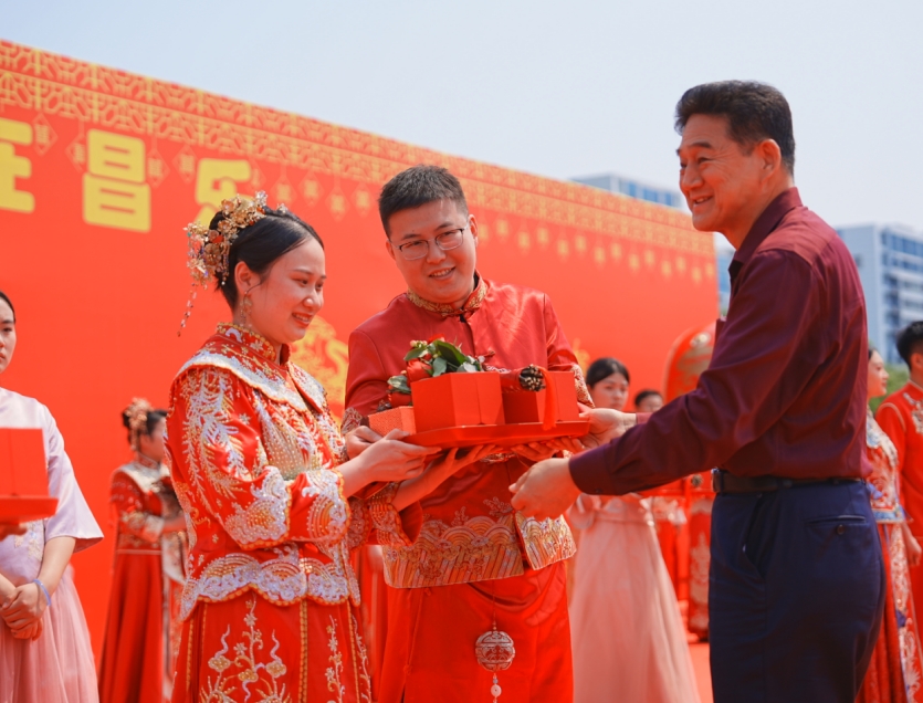 2025年5月25日上午,昌乐县市民文化体育公园内喜气洋溢,一场以“倡婚俗新风 树文明典范”为主题的“金世良缘·爱在昌乐”公益集体婚礼在此隆重举行。梦金园为20对新人送上婚戒和婚书,用简约庄重的仪式喜结连理,用实际行动践行“低彩礼、简流程、重感情”的婚俗新风,为全社会树立了文明婚恋的典范。