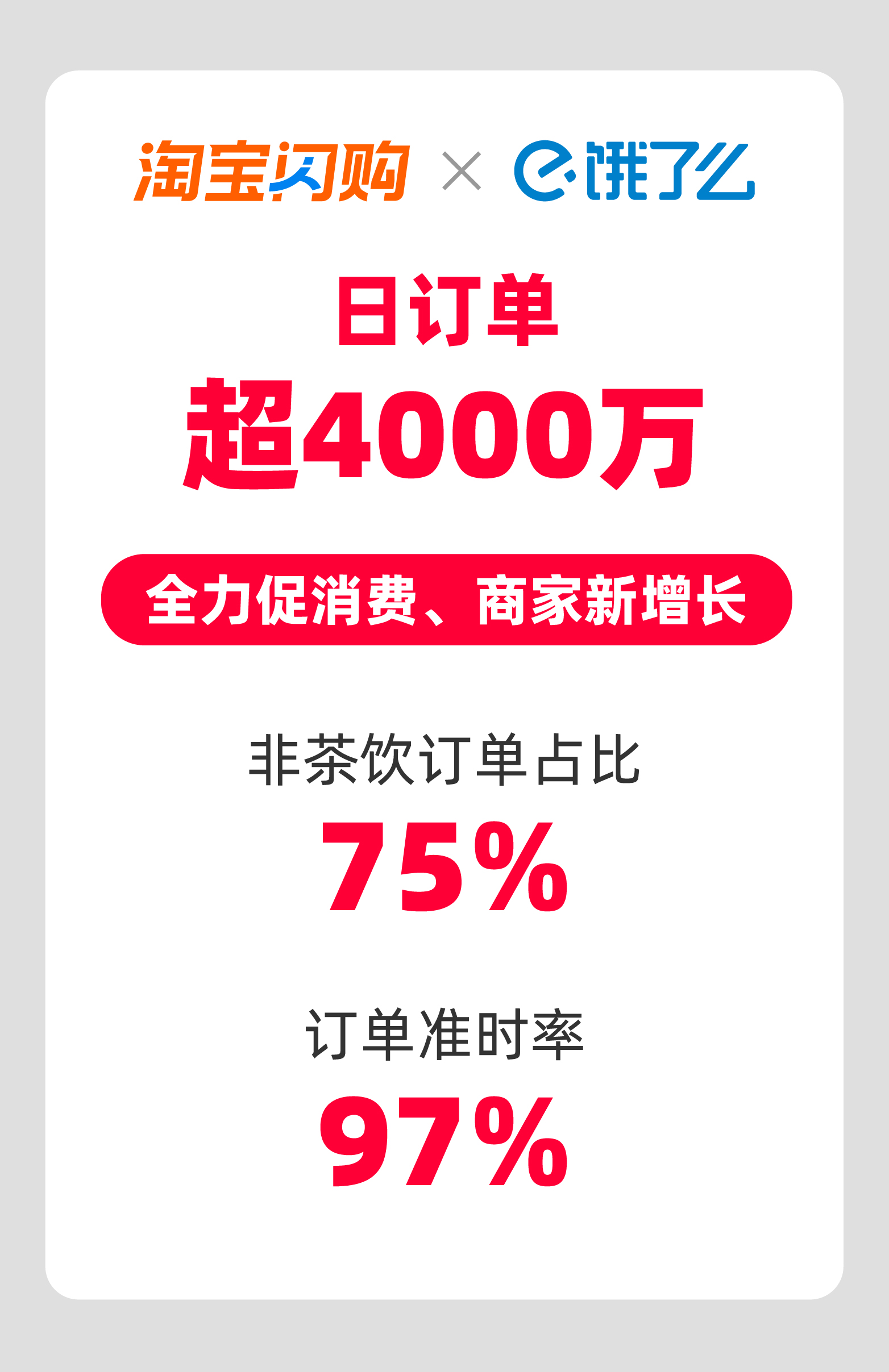 5月26日,淘宝闪购联合饿了么宣布,日订单数已超4000万。此时距淘宝闪购正式上线,不到一个月。