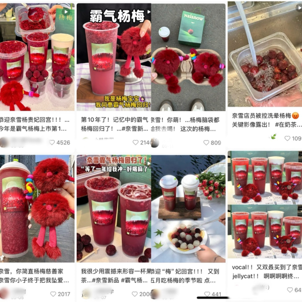 “每口都能吸到爆汁果肉,酸甜解腻直接封神!”“连喝一周都不腻,复购 N 次的快乐谁懂!” 社交平台上,“奈雪霸气杨梅”话题讨论量持续飙升,口碑热度居高不下,消费者自发晒单、安利的内容刷屏朋友圈。不少网友自发拍摄 “与奈雪霸气杨梅的十年”“DIY 杨梅特饮” 等二创视频,充满生活气息的分享,让“奈雪霸气杨梅”从一款茶饮,变成了社交生活中的热门话题。