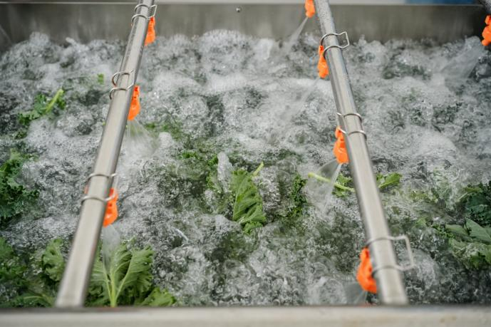 在采摘环节,喜茶要求种植基地以逐层采摘的方式在每天上午进行鲜叶采摘,每株羽衣甘蓝约采3-5片叶,叶片长度30cm,叶片末端根茎长度小于5cm。在加工环节,当天上午采摘的羽衣甘蓝在从真空预冷设备完成快速降温处理后,再进入喜茶定制的气泡清洗机进行清洗,之后经历又一轮分拣后完成打包,发往喜茶全国门店。羽衣甘蓝包装上均带有喜茶溯源码,扫码可显示基地编号、采摘日期、包装日期等各项信息,以实现全流程可追溯。