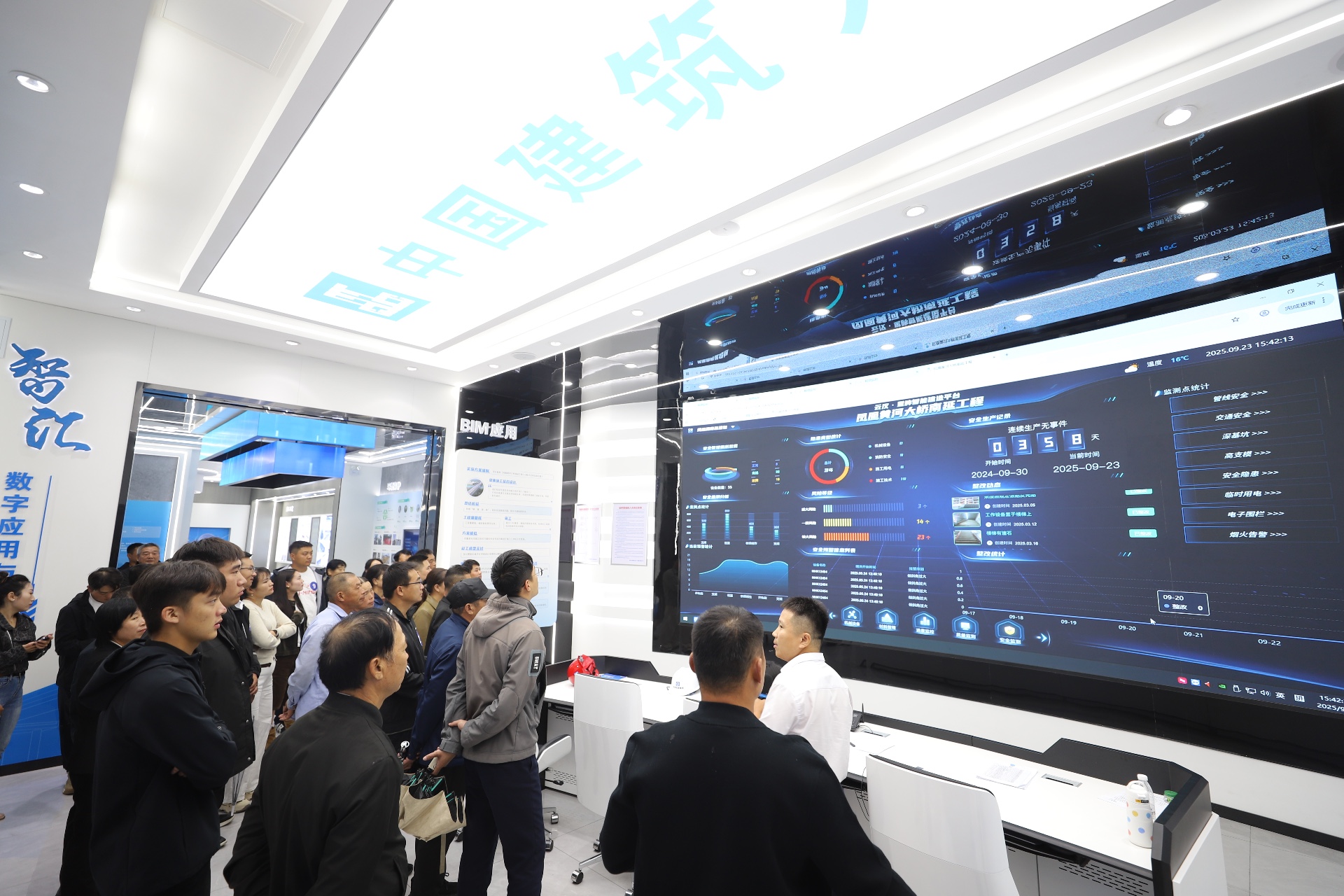 活动当天,为切实增强工友的归属感与幸福感,中建八局特别策划了“工友家属开放日”活动,邀请21个工友家庭走进凤凰黄河大桥南延工程项目现场。家属们参观了项目展厅与铁军文化展区,深入了解工程意义与亲人的工作价值。现场设立的“农民工公益服务亭”提供健康检测、全家福拍摄等贴心服务,工友与家属还在职工食堂共进温馨晚餐,体验“项目如家”的温暖。