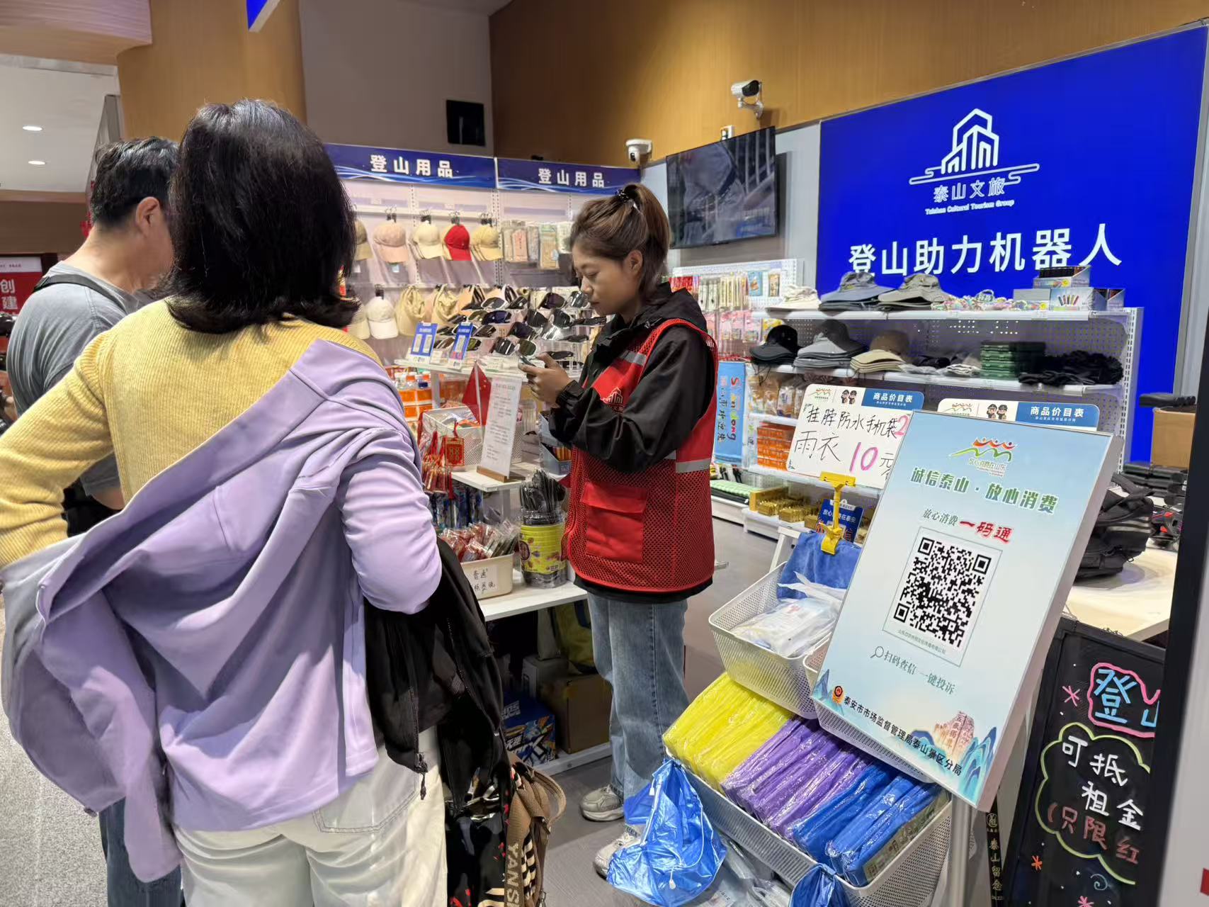 一码畅通,让监管更高效。在泰山景区,数智赋能让信息公示“触手可及”,搭建起全民参与监督的“阳光平台”。顺应营业执照电子化趋势,创新推行“放心消费一码通”,将登记信息、监管信息等7大类信息全部集合到一个二维码,“满墙证照”变为“一码通晓”,并一键链接AI维权助理,实现“扫码查信,一键投诉”,提升了监管效能。