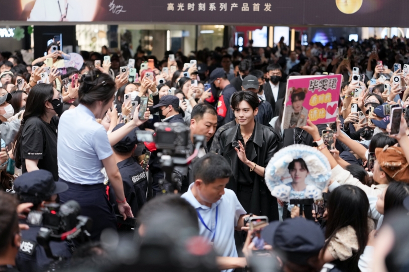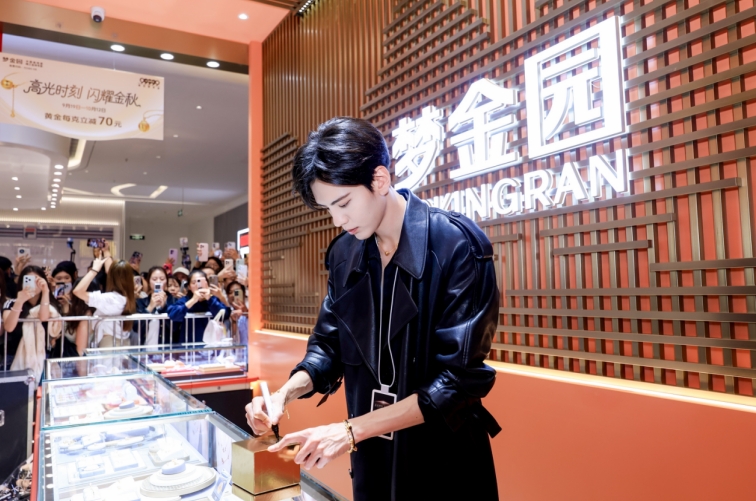 活动开始前数小时,欧亚卖场已被毕雯珺的粉丝“矩阵式包围”,现场人潮涌动,气氛热烈。作为梦金园高光大使,毕雯珺的亮相将现场气氛推向首个高潮。他以一身简约而精致的黑色风衣现身,巧妙叠戴「高光时刻」系列项链与手链,完美诠释了“低调中的高级感”。在互动环节,毕雯珺亲切分享了其个人的穿搭心得:“我偏爱简约舒适的风格,但一件点睛的配饰至关重要。「高光时刻」系列的设计细腻自然,那种不经意间流露的闪耀,正是我喜欢的闪光小秘诀。”