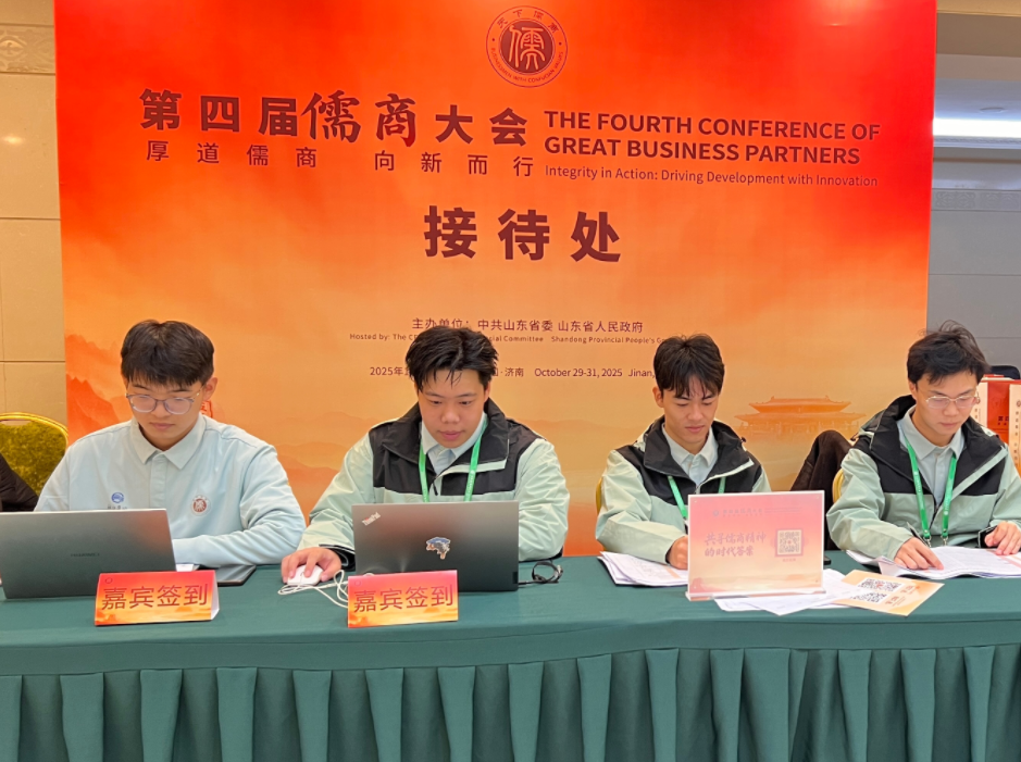 10月29日,以"厚道儒商 向新而行"为主题的第四届儒商大会在济南隆重开幕。为保障大会各项活动顺利推进,共青团济南市委联合山东财经大学、山东管理学院招募130名优秀大学生志愿者,他们以专业的素养、温暖的微笑,为这场汇聚全球儒商的高水平盛会提供了坚实保障。