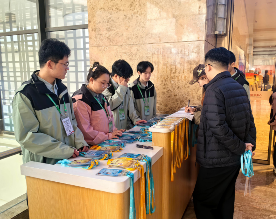 在证件服务中心,志愿者们认真细致地进行证件分拣、整理和分发工作,确保每位嘉宾顺利参会;在大会活动现场,志愿者们负责嘉宾引导、秩序维护和现场协调,保障各项议程顺利进行。