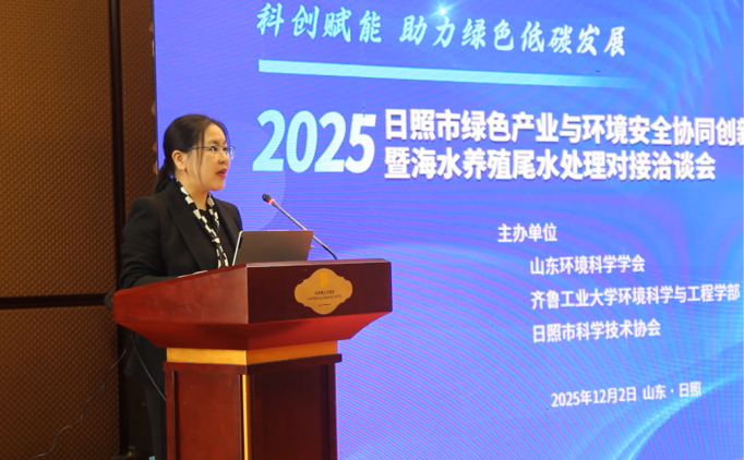 2025年12月2日,“2025年日照市绿色产业与环境安全协同创新基地科技成果推介暨海水养殖尾水处理对接洽谈会”在日照隆重召开。本次会议由山东环境科学学会、齐鲁工业大学环境科学与工程学部、日照市科学技术协会联合主办,以“科创赋能 助力绿色低碳发展”为核心主题,聚焦海水养殖尾水处理技术创新、科技成果转化及产学研用深度融合,旨在为日照市绿色产业高质量发展搭建高效供需对接平台。山东环境科学学会常务副秘书长许晶主持会议。