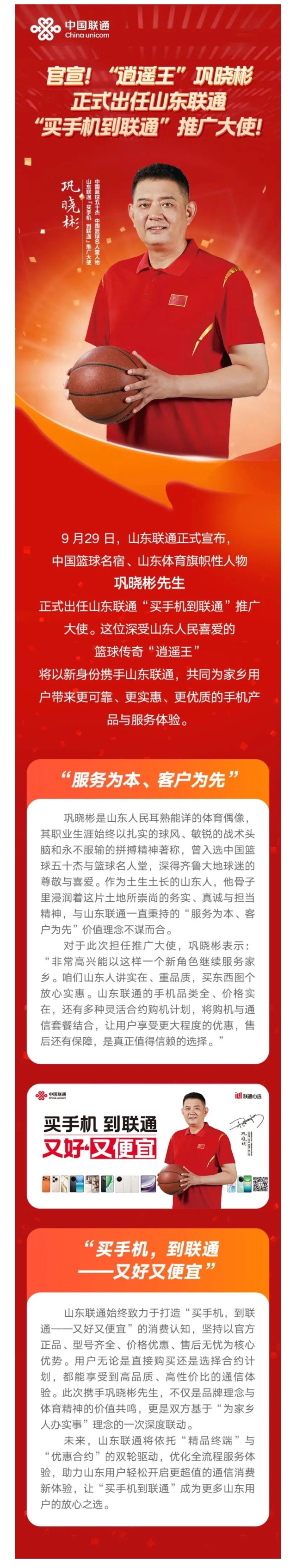 官宣!“买手机到联通”推广大使巩晓彬