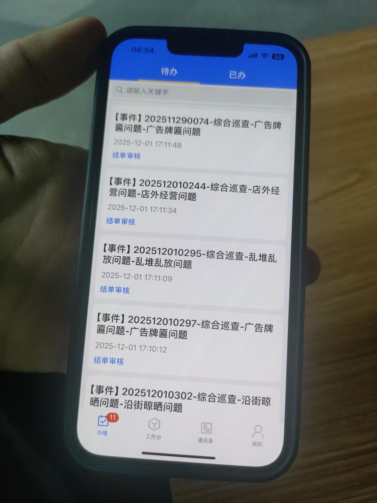 在对应网格员的手机终端上,“综合巡查-店外经营问题”等待办事件实时更新。工单下发后,网格员需在规定时间内处理,上传整改前后照片,直至系统审核通过。“现在网格员接收任务、反馈情况等都可以通过平台来完成,便捷高效。”杨林介绍道。从发现问题到结单审核的闭环流程,让治理响应更高效。