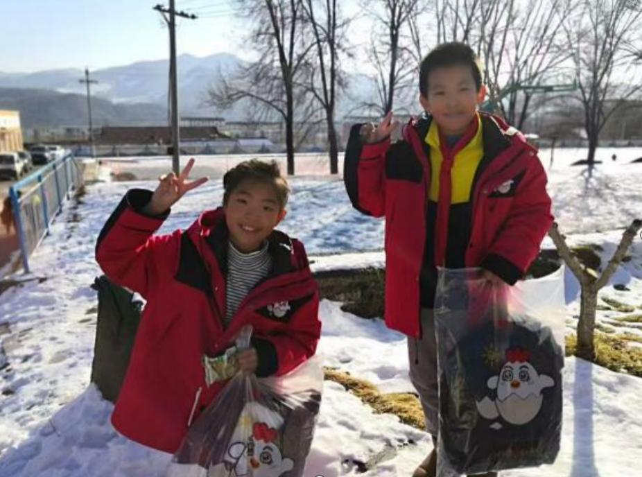 (甘肃武威天祝|收到暖衣的小男孩挥着气球致谢)
