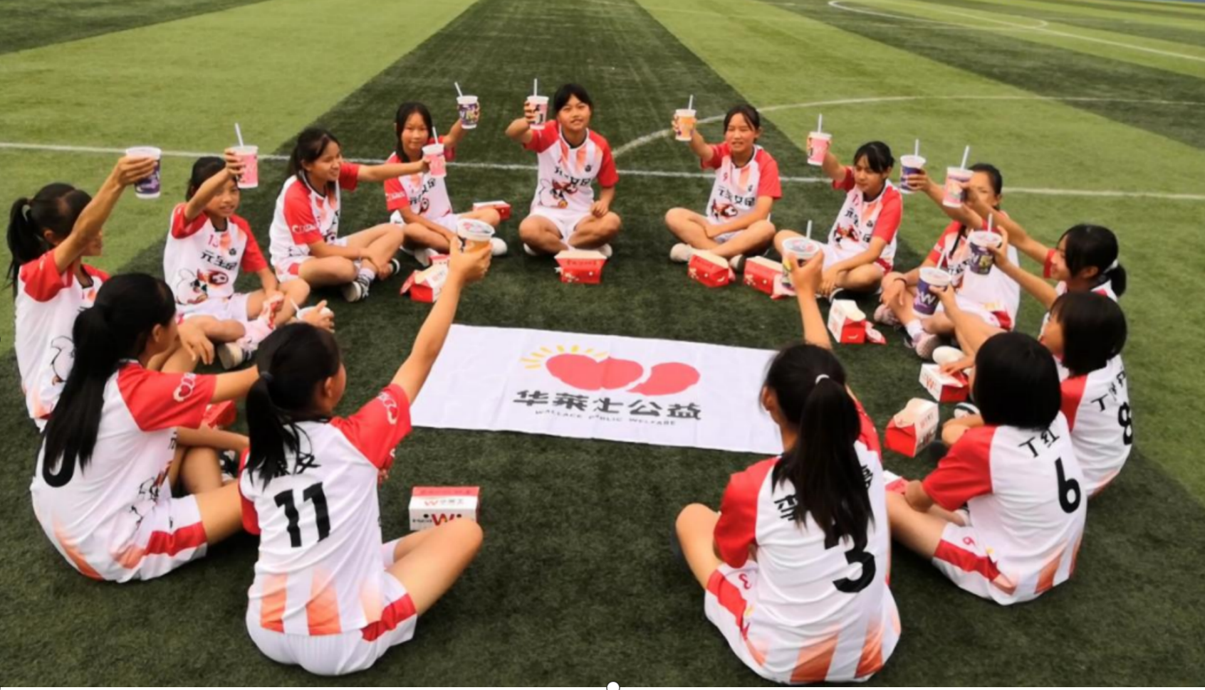 在助力青少年全面发展方面,华莱士的公益触角不断延伸。2024年1月,“元宝女足成长支持计划”启动,现场发放第一批支持物资——254套羽绒冬衣,并持续通过赛事资助与球衣球鞋等装备支持,助力女足队员追逐梦想;“华莱士青春运动场”、“乡村儿童操场”的陆续落地,也为乡村青少年开展体育锻炼、培养运动兴趣提供了优质场地。从乡村学校的课堂设施到女足赛场的后勤保障,从运动空间搭建到成长物资支持,华莱士以多元方式守护青少年成长。![]()