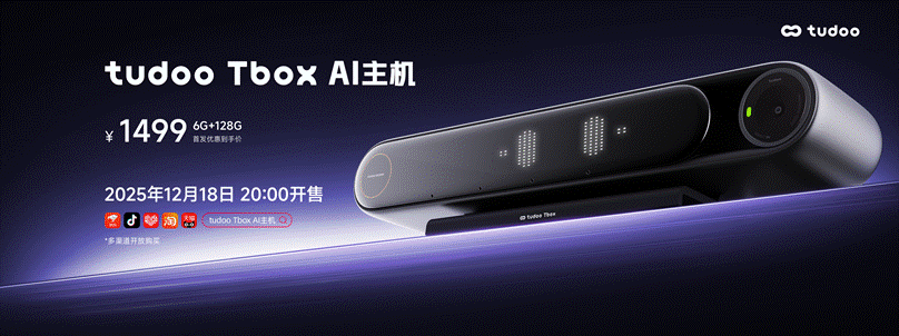这款融合了AI智能与多模态交互的“新物种”,不仅打破了传统电视只能“看”的功能局限,更标志着家庭娱乐迈入“玩电视”的新时代。据了解,tudoo Tbox标准版定价1499元,将于12月18日20:00在全网各大电商平台正式开售。