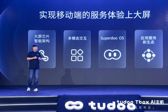 曹玮介绍,tudoo Tbox AI主机以“让服务体验回归大屏”为核心理念,通过全新pad级大屏芯片智能架构、多模态交互、自研AI OS操作系统与开放应用生态等四大核心技术,尝试解决当前电视大屏“开机率低、使用割裂、互动缺失”等核心痛点。