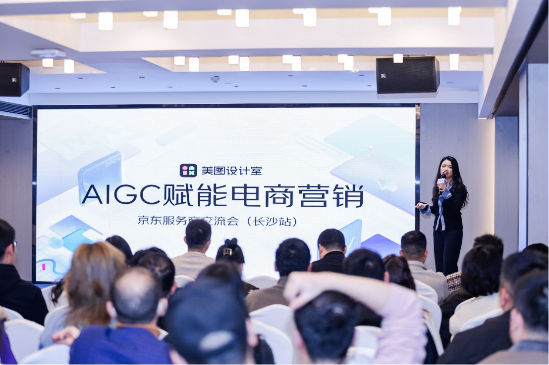 交流会现场,服务商与商家的互动洽谈氛围热烈。服务商通过“案例拆解”+ “实操演示”的方式,为商家提供可落地的解决方案。长沙本地农特产商家王先生在体验 AI 生图工具后表示:“以前拍一组产品图要花几千块,现在 AI 几分钟搞定,还能匹配长沙地域场景,太实用了!”