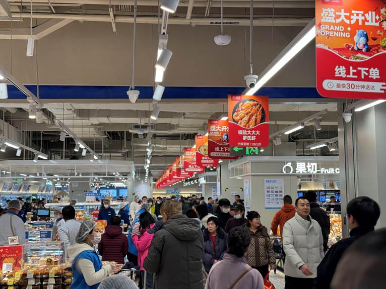 2025年12月19日,济南盒马鲜生世纪大道万达店正式开门迎客。这是济南第9家盒马鲜生。盒马山东区域负责人王龙池表示,“山东是经济大省,也是消费大省,挑起了稳定经济的大梁。在今年陆续开店中,我们充分感受到山东的市场活力和消费热情。济南是我们重要的战略机遇城市,我们将以更好的服务满足市民需求。”
