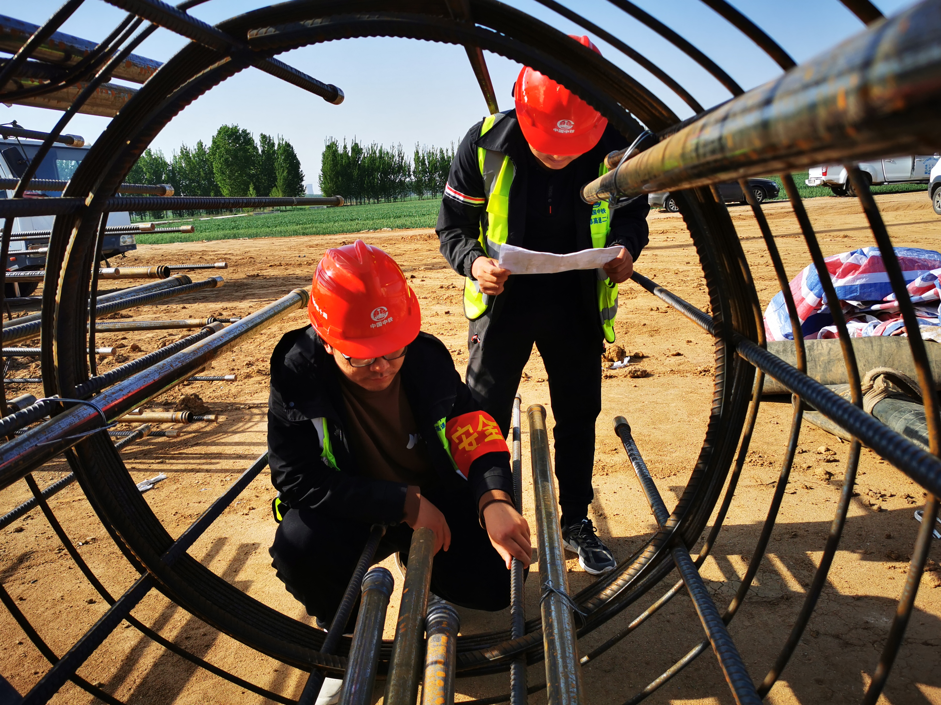 项目团队坚持创新驱动破局提质。桩基施工阶段,针对区域岩溶发育特点,创新“桩底岩溶检测+成孔检测仪检测+超声波检测”三位一体模式,实现桩基一次性成孔合格率100%;路基施工引入无人自动压实技术,优化工艺提质增效;针对高墩柱施工难题,自主研制专用装置将保护层合格率提升至100%,斩获实用新型专利;现浇梁施工集成智能温控设备,精准控制混凝土芯部温度,杜绝裂缝隐患,实现梁体“内实外美”。