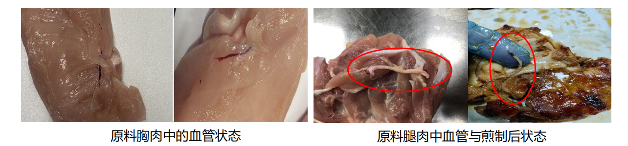 “带骨鸡肉炖熟或炸制后,骨头附近为啥总有红 / 粉红色?是不是没熟透,吃了会不安全?”记者注意到,这是不少消费者在烹饪和食用带骨鸡肉时最常遇到的困惑。针对这一核心疑问,张文斌在专访中进行了解答,“骨骼的导热性比肌肉低约20%,使得贴近骨头的肌肉受热较慢,温度往往低于60℃,肌红蛋白未能完全变性,自然会残留淡淡的红色;加上鸡肉放血过程中残留的少量血红蛋白,受热后会浓缩凝结,形成红色丝状物。当鸡肉中心温度达到 71℃的微生物杀灭标准,即便骨头附近存在粉红色,也属于安全可食用范围。”