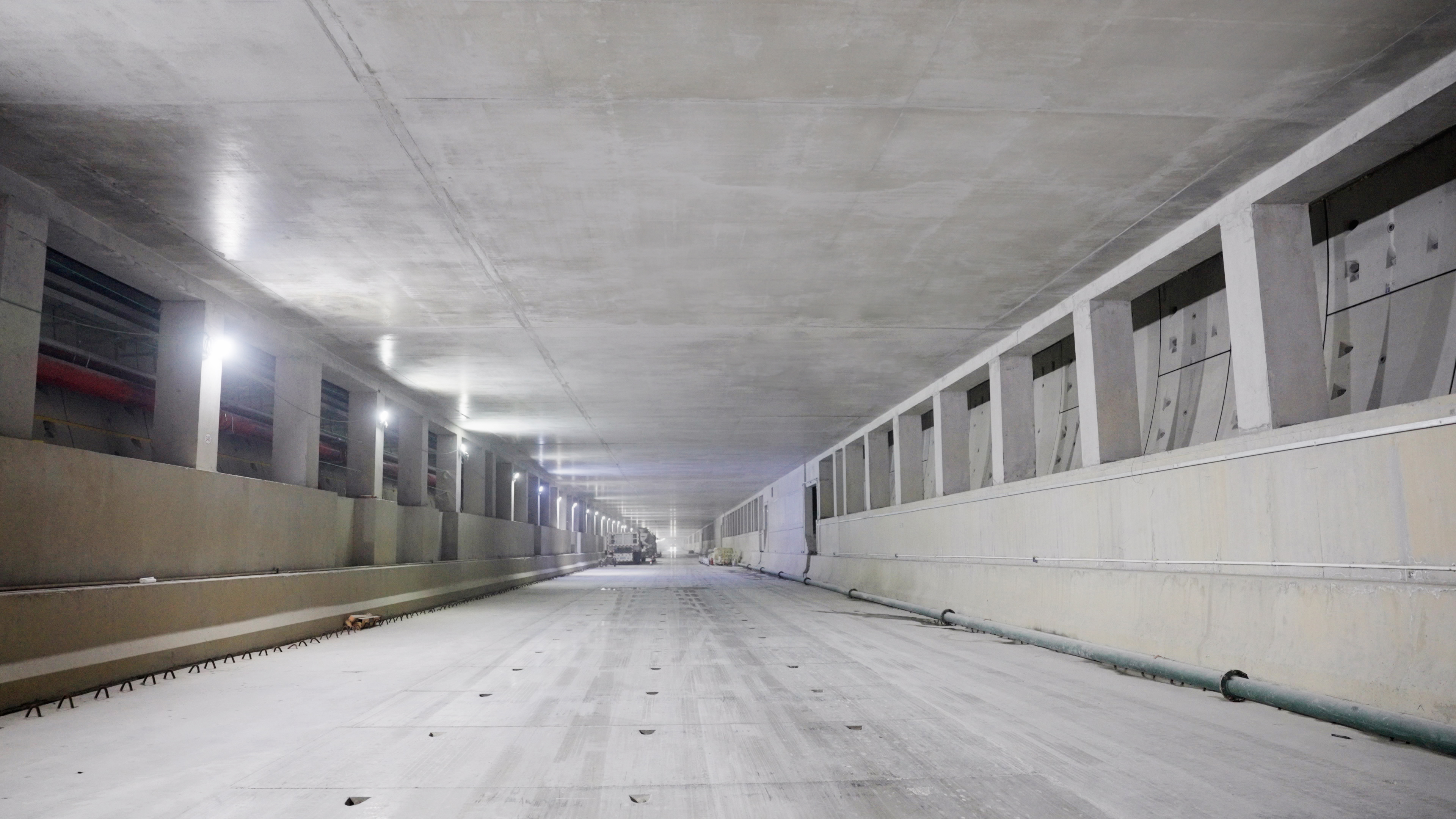 12月30日,世界最大直径水下盾构隧道济南黄岗路黄河隧道上层车道板结构施工顺利突破3000米,标志着隧道内部结构施工正式迈入攻坚决胜阶段,为早日实现隧道通车奠定坚实基础。
