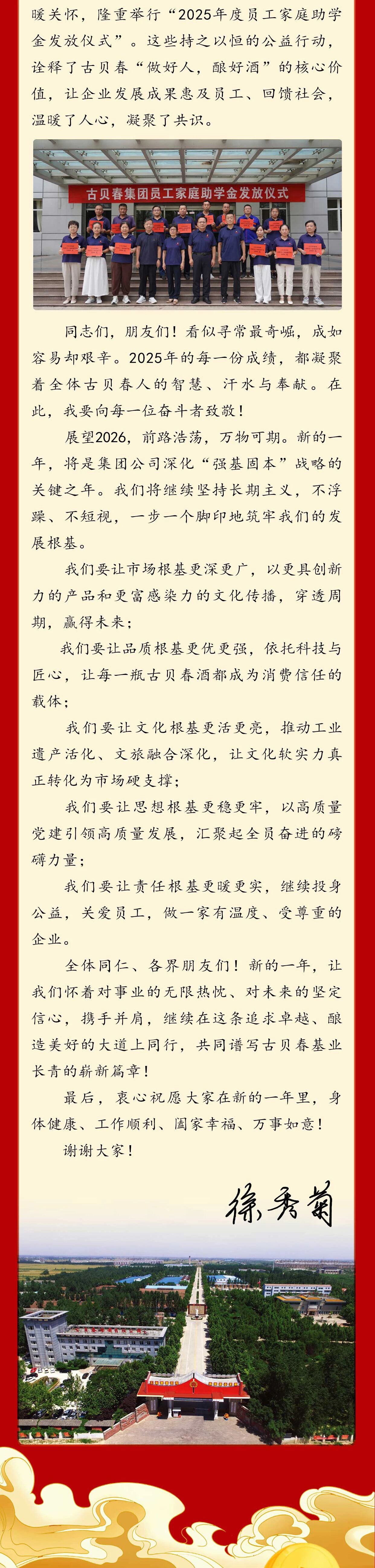 古贝春集团有限公司董事长徐秀菊二〇二六年新年献词