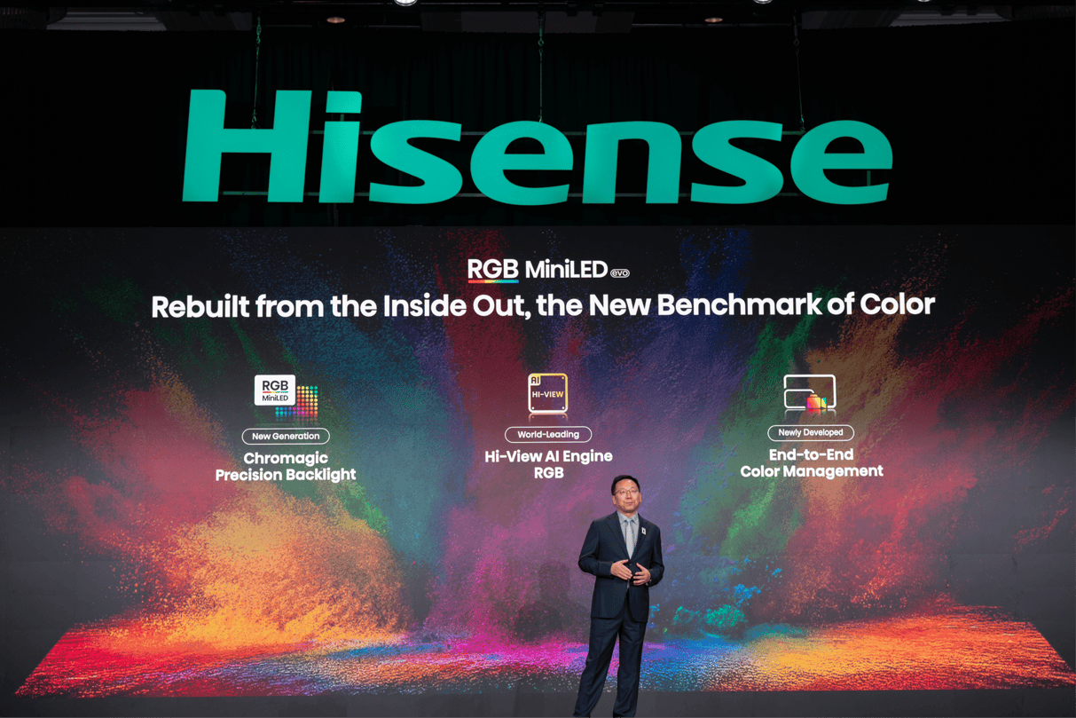 为了打破传统Mini LED和OLED的色彩、能耗及视觉舒适局限,进一步提升大屏时代显示设备的用户体验,海信一年前开创并全球最先量产了RGB-Mini LED电视,这一创新技术随着全球TOP5电视品牌悉数布局,迅速成为全球高端电视的趋势热词。“RGB与Mini LED的结合,是一场颠覆性的变革。”海信视像科技总裁李炜在今年CES的展前发布会上表示,为了还原那份无限趋近于肉眼所见的极致真实,全新一代RGB-Mini LED技术带来了三大进化。