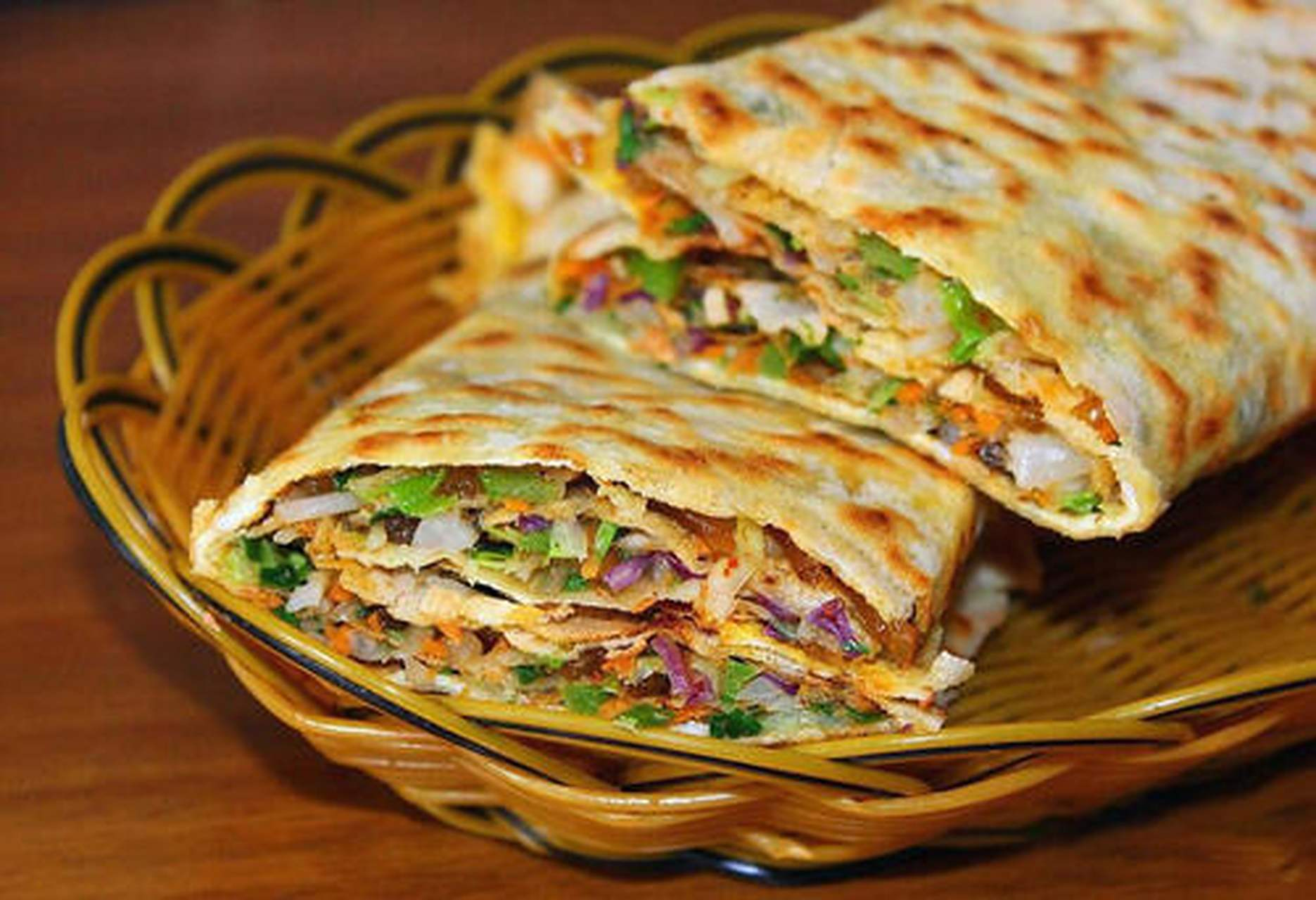 枣庄菜煎饼是风靡街头的美味。在两张摊好的小煎饼中间,加入由十几种蔬菜调制的馅料,在鏊子上煎烤至外皮酥脆金黄。一口咬下,外酥里嫩,菜香四溢,营养丰富,是便捷与美味兼具的平民美食。