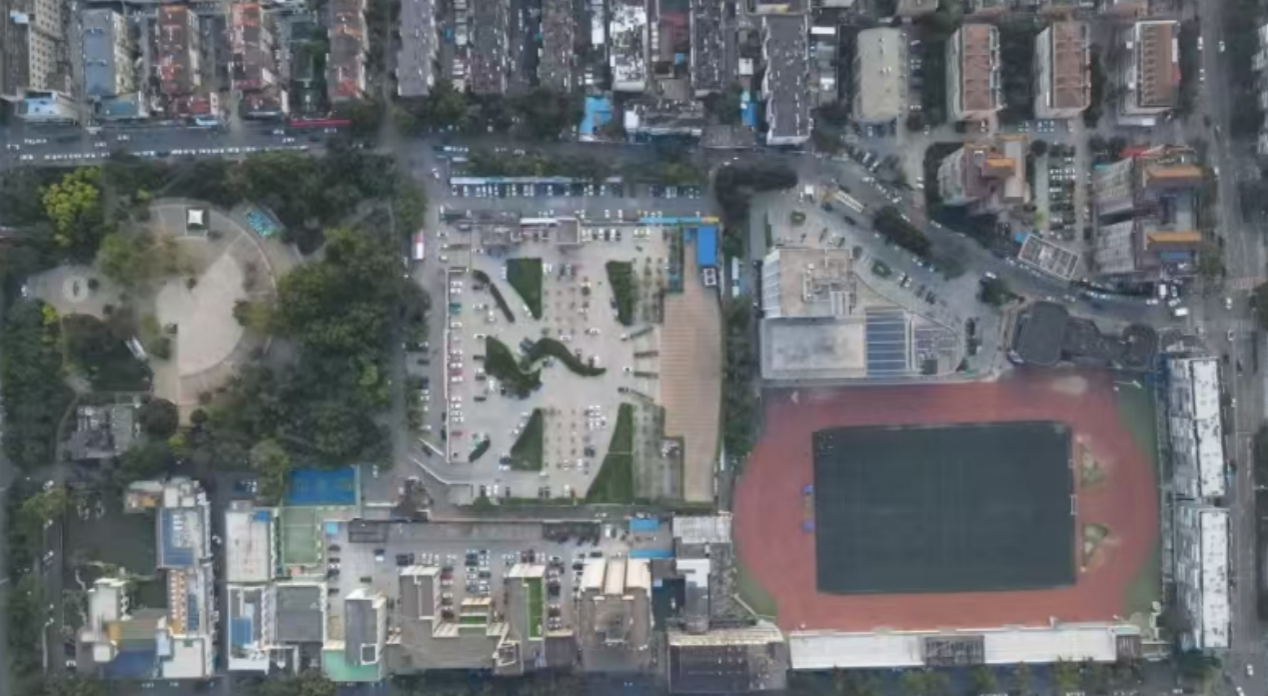 在济南城西,槐苑广场与槐荫体育场曾是城市发展的亮眼名片,如今却在岁月更迭与城市扩张中面临新挑战。项目南侧地块的槐苑广场,自1999年建成开放至2017年,经历了儿童游乐设施增设、广场铺装改造、健身设施更新等多次改造。项目北侧地块的槐荫体育场2011年便投入使用,如今体育场四周交通堵塞,内部设施老化,甚至出现部分塑胶跑道开裂、鼓包、草皮磨损严重等现象。随着城市的快速发展,这片拥有39万常住人口、200万流动人口的黄金地带,“城市病”日益凸显。