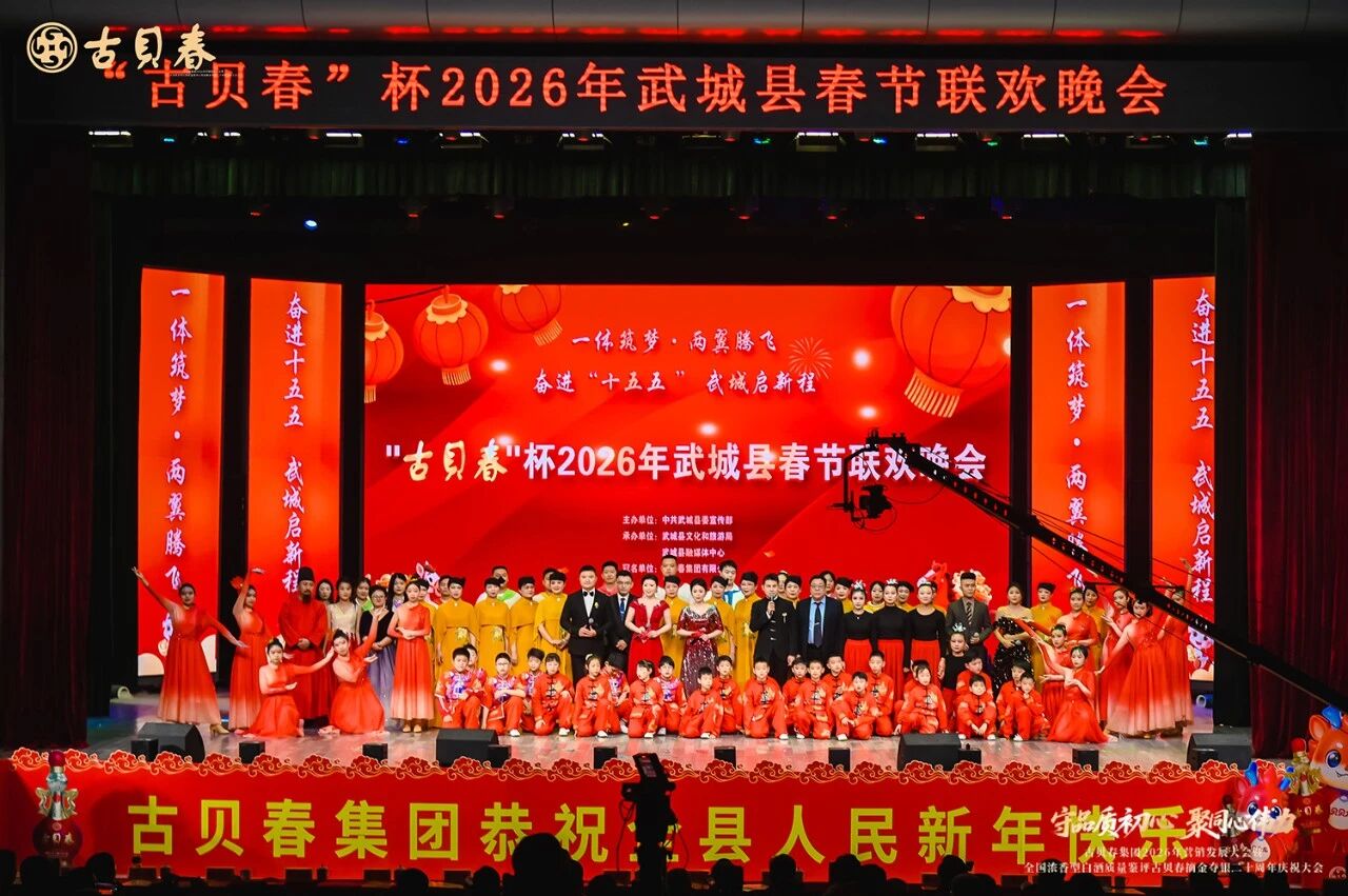 同日下午,古贝春冠名的武城县春节联欢晚会,在武城融媒体中心演播大厅举行。著名相声表演艺术家、古贝春形象代言人赵炎,中国广播说唱团著名相声演员、北京曲协副主席付强联袂演出,为家乡父老带来欢声笑语。古贝春集团董事长徐秀菊在致辞中表示,企业努力的全部意义,就是“酿好这杯代表家乡风土、承载岁月真情的酒”,让美酒融入千家万户有滋有味的生活。