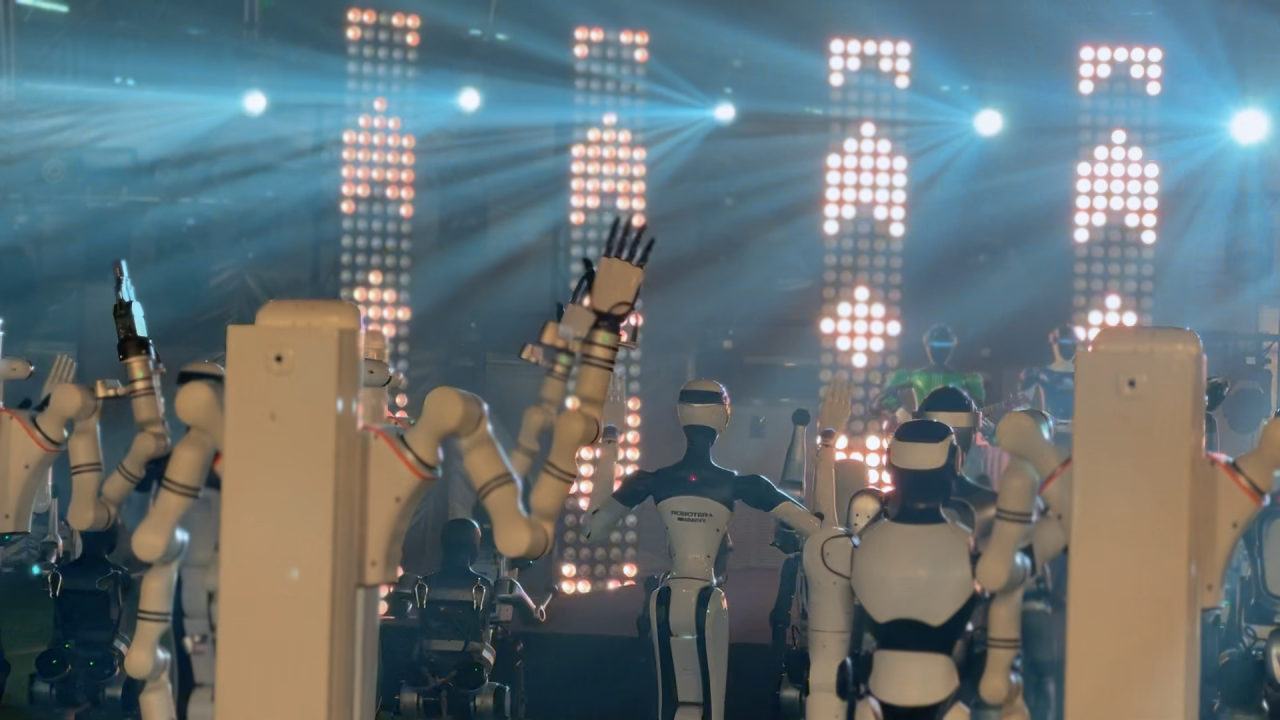 央视春晚主会场,松延动力双足人形机器人在小品《奶奶的最爱》中接连完成侧手翻、空翻等动作,平稳落地;宇树机器人与少年武者同台演武,在武术节目《武BOT》中,完成六合拳对练、棍术配合、双截棍展示等多个高难度环节;魔法原子人形机器人在歌曲《智造未来》中通过多机协作完成群体舞蹈动作;银河通用则在贺岁微电影《我最难忘的今宵》中,演示了机器人叠衣服等干活技能。