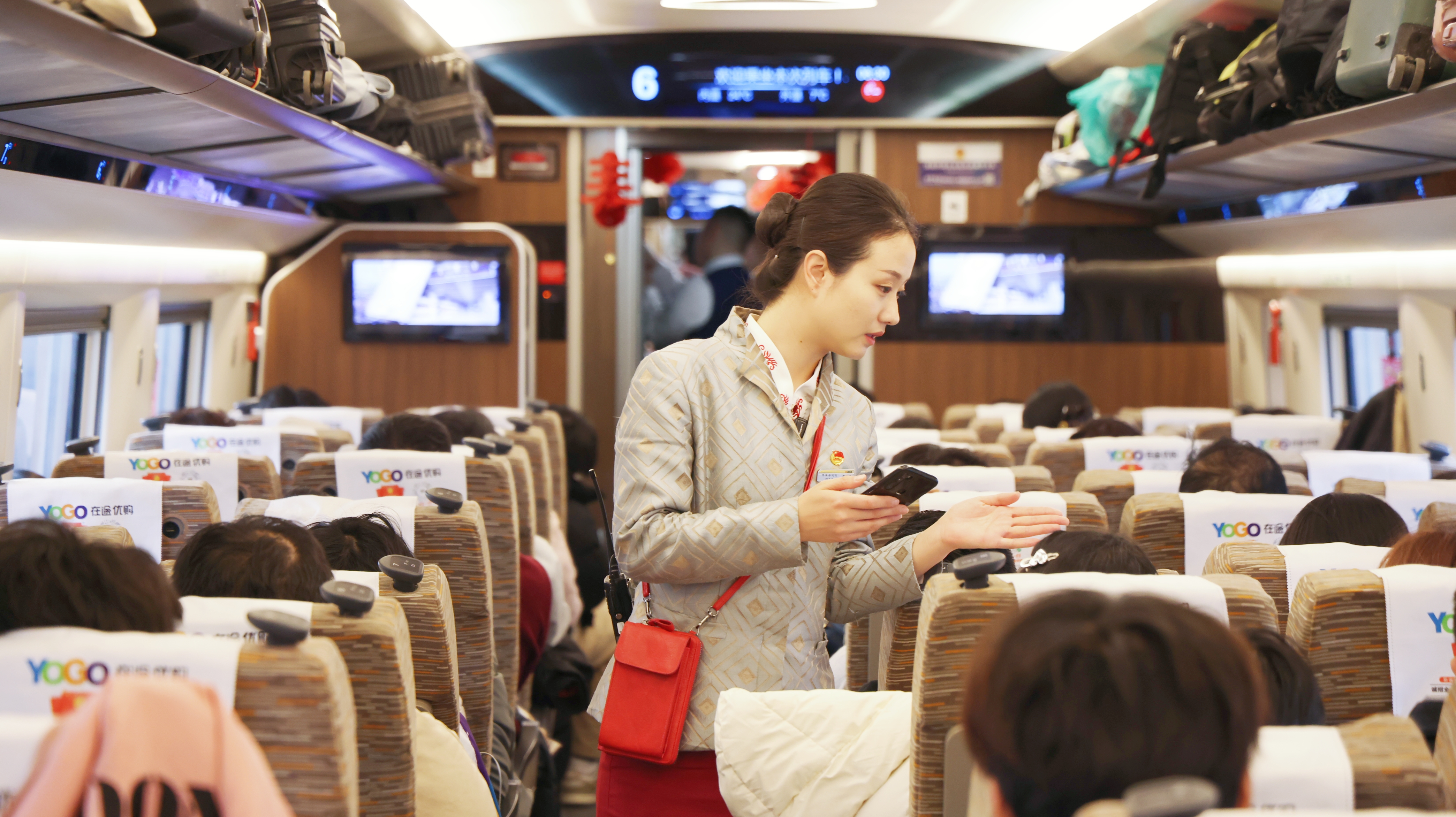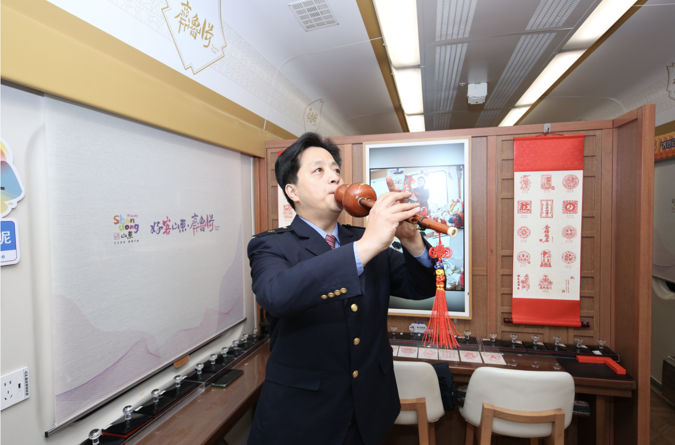 “齐鲁1号”旅游列车新时代文明实践站将“好客山东”人文底蕴与客运服务深度融合。车厢内打造孔孟名言文化墙、山东非遗文创展示角,配备含大字版时刻表、折叠老花镜的助老爱心包等适老服务,设置多功能便民药箱、泉城茶水站、休闲区,并提供齐鲁文化典故读物等服务。列车组建党员志愿服务队,在重点旅客帮扶、文明出行宣传、应急便民服务上精准发力,并创新推出“高铁文明微课堂”“齐鲁文化快闪讲解”等特色活动,在丰富活跃乘客旅程的同时,潜移默化中接受教育,既能感受中国铁路的硬核实力,更能领略齐鲁大地的文明新风与温情暖意。