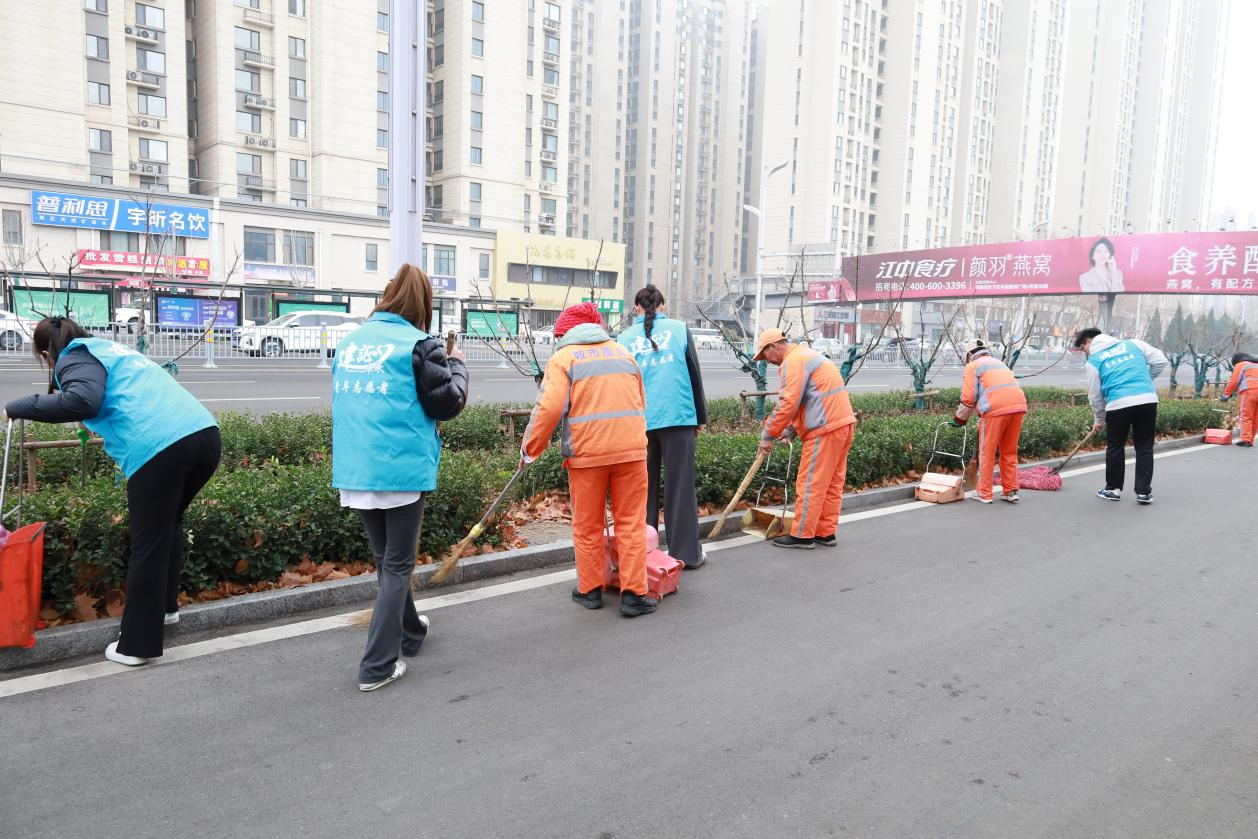 活动现场,20余名身着“蓝马甲”的青年志愿者手持扫帚、垃圾夹等工具,走上街头分工协作,认真清扫路面杂物、捡拾绿化带内的垃圾,还仔细擦拭公交站台设施,全力协助环卫工人维护城市市容整洁。劳动间隙,志愿者们与环卫工人亲切交谈,得知他们凌晨三点半便顶着寒风上岗,日复一日坚守岗位守护城市洁净,志愿者们深受触动。大家纷纷表示,建筑人是城市的建设者,环卫工人是城市的守护者,平凡岗位的坚守皆闪耀着奉献的光芒。