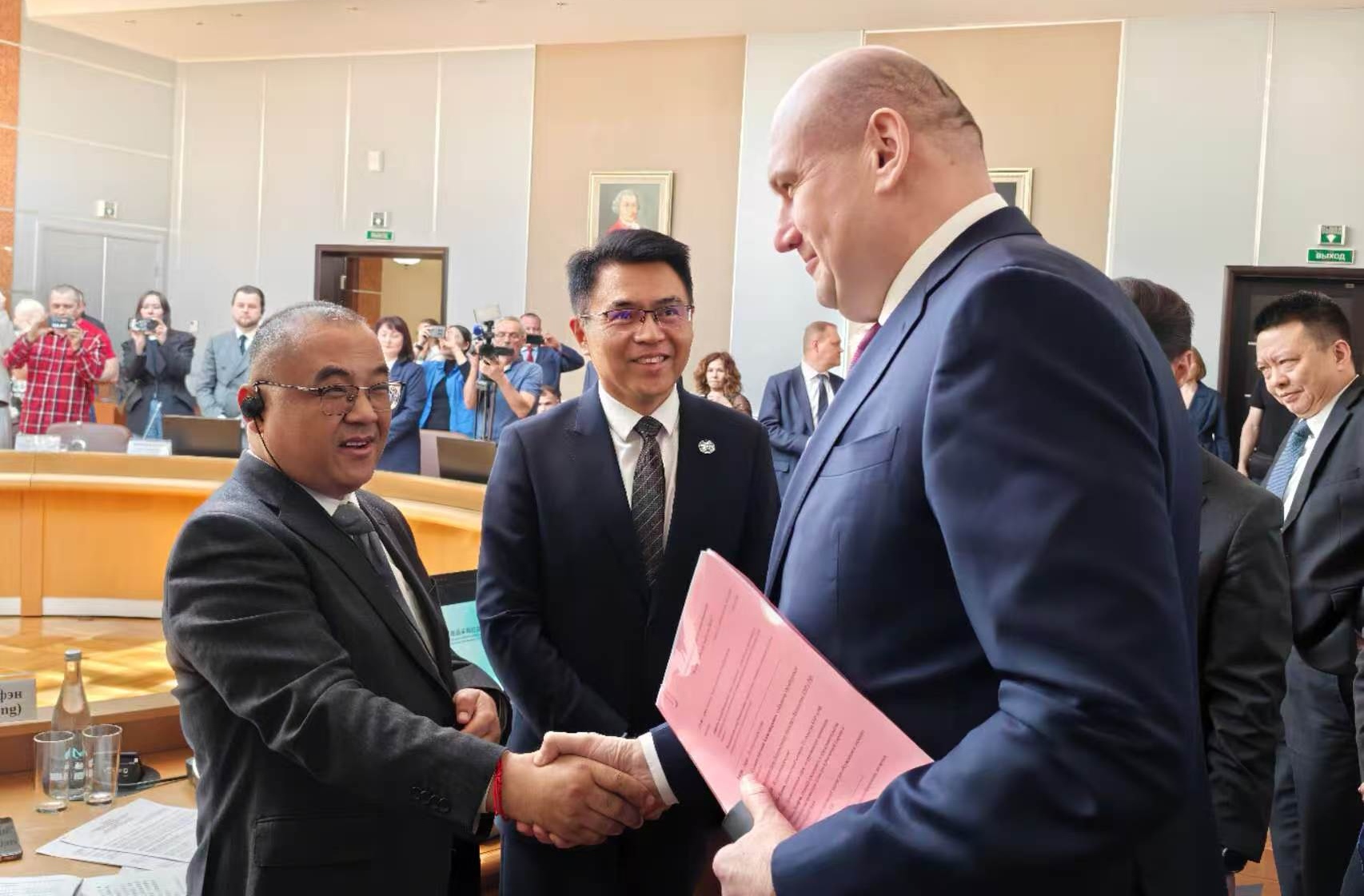 会上,山东省与俄罗斯奥伦堡州投资发展署金砖国家投资中心正式签署经贸合作备忘录,搭建起两地常态化经贸交流与合作对接的机制化平台,为后续双方合作筑牢基础。