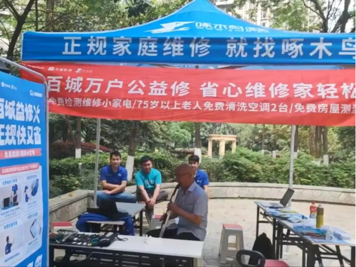 啄木鸟“百城益修”的爱心蓝色帐篷,不止出现在重庆,同样出现在上海浦东的老年活动中心、北京朝阳的社区广场、成都锦江的便民服务站。过去五年,这样的场景在许多城市反复上演。啄木鸟家庭维修持续组织专业工程师队伍,为社区居民提供免费维修和清洗服务。