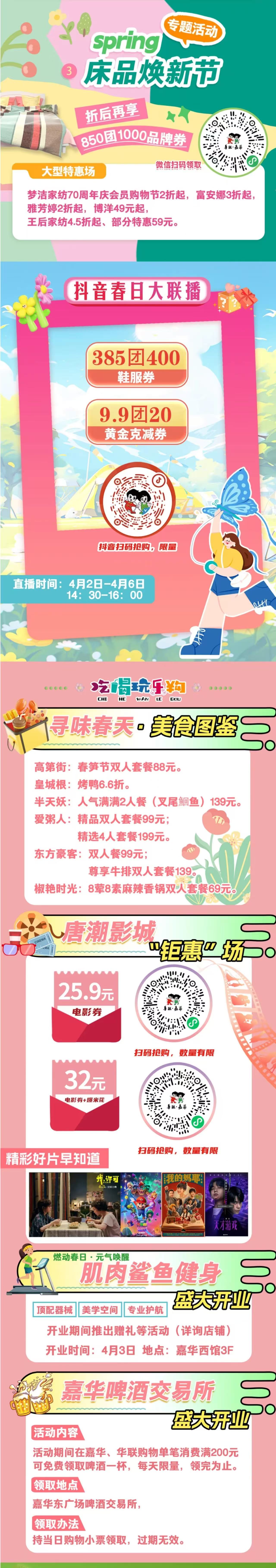 2026华联商圈春季消费节明日开启!购物/美食/电影/健身全域大联欢!春款鞋服包满100减50,黄金低价,化妆品200减40起,名表7折起~