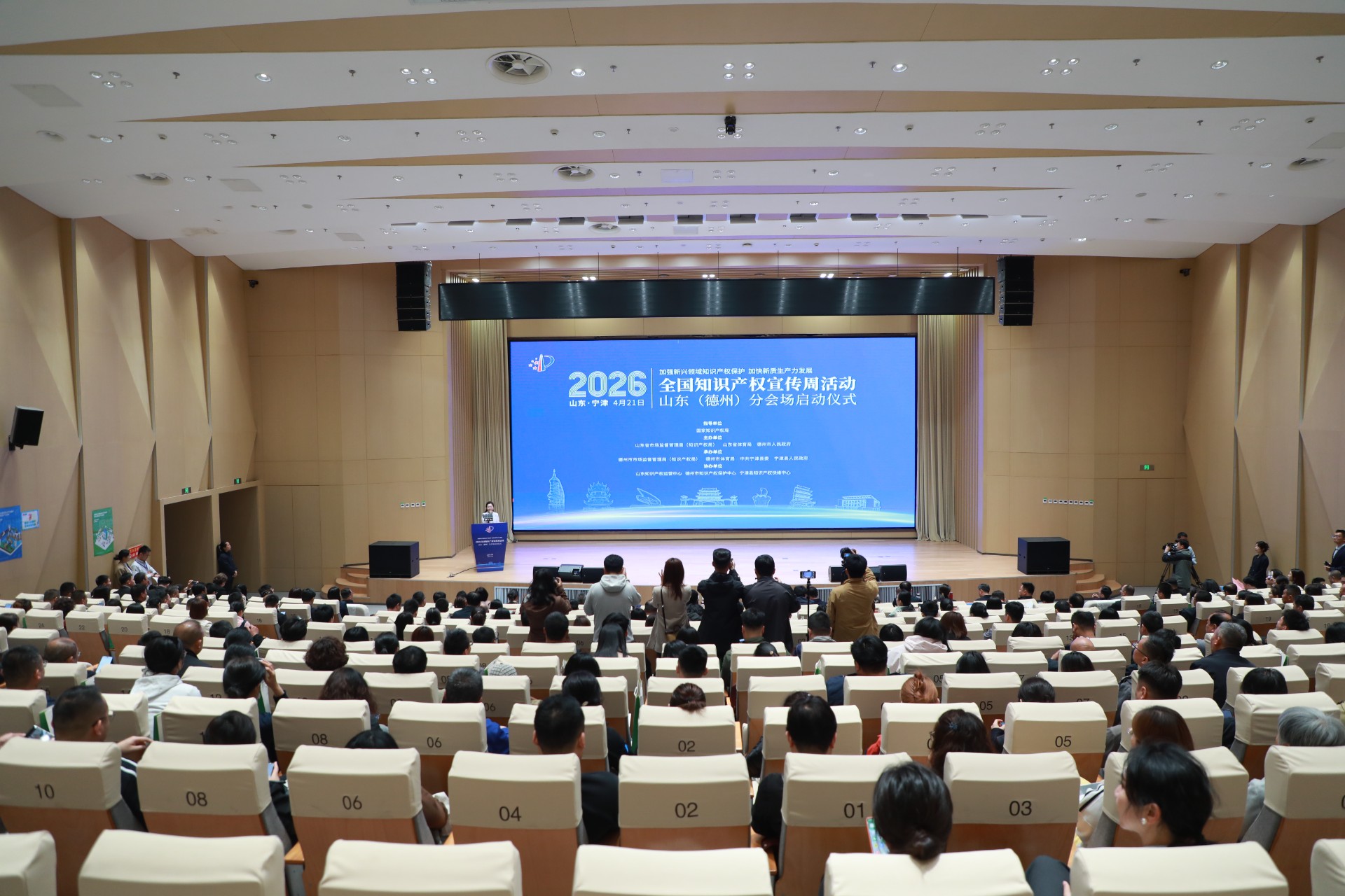 4月21日,2026年全国知识产权宣传周山东(德州)分会场活动在宁津县举办。活动以“加强新兴领域知识产权保护 加快新质生产力发展”为主题,紧扣今年世界知识产权日“知识产权和体育:各就位、预备、创新!”的口号,汇聚国家、省、市、县相关政府部门、高校院所、行业协会及企业代表,通过成果发布、项目签约、产业对接、实地调研等形式,集中展现山东知识产权强省建设进展,推动体育产业与知识产权深度融合,赋能新质生产力培育。